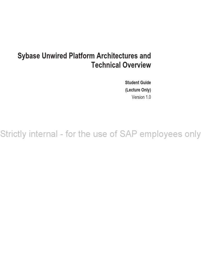 This course material is a companion to the Sybase Unwired Platform Architectures and Technical Overview course. The Sybase Unwired Platform Architectures and Technical Overview is divided into 8 modules. Each module contains: