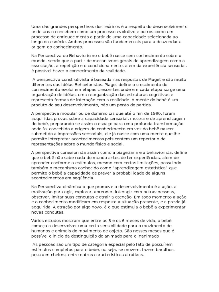 Na Perspectiva do Behaviorismo o beb nasce sem conhecimento sobre o