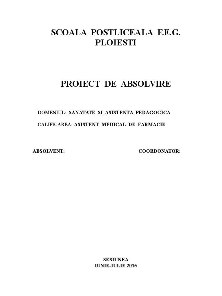 CALIFICAREA: ASISTENT MEDICAL DE FARMACIE