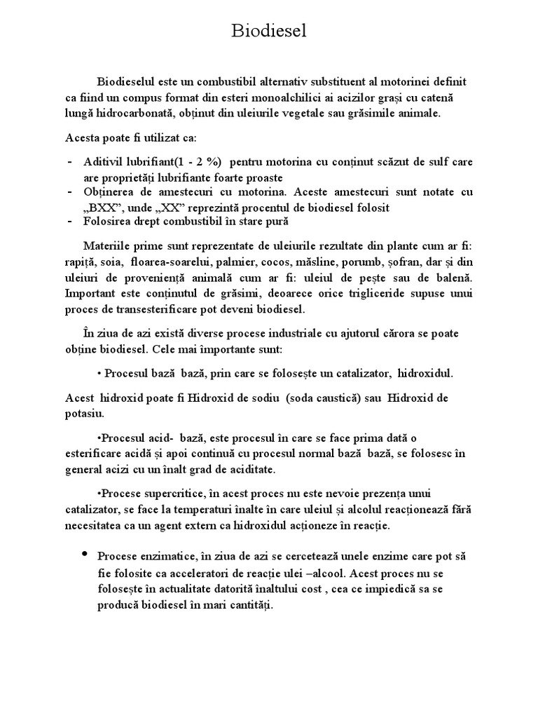 obine biodiesel. Cele mai mportante sunt: