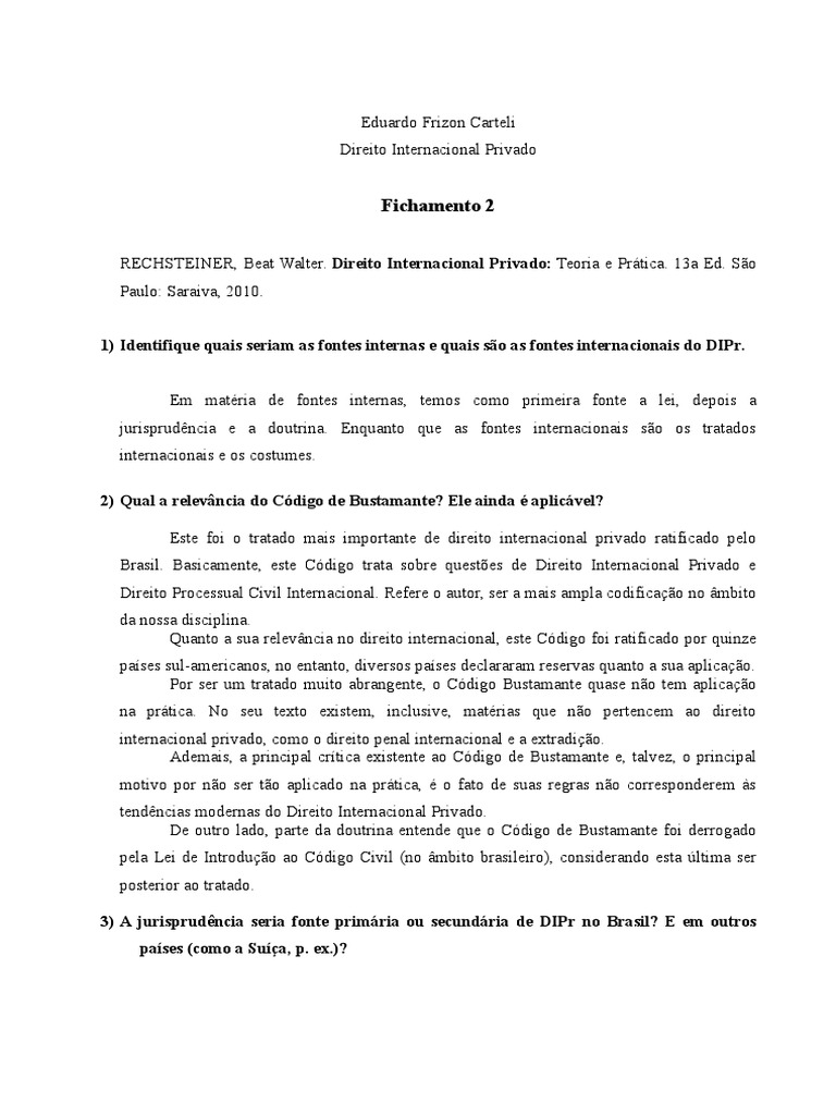 1) Identifique quais seriam as fontes internas e quais so as fontes internacionais do DIPr.