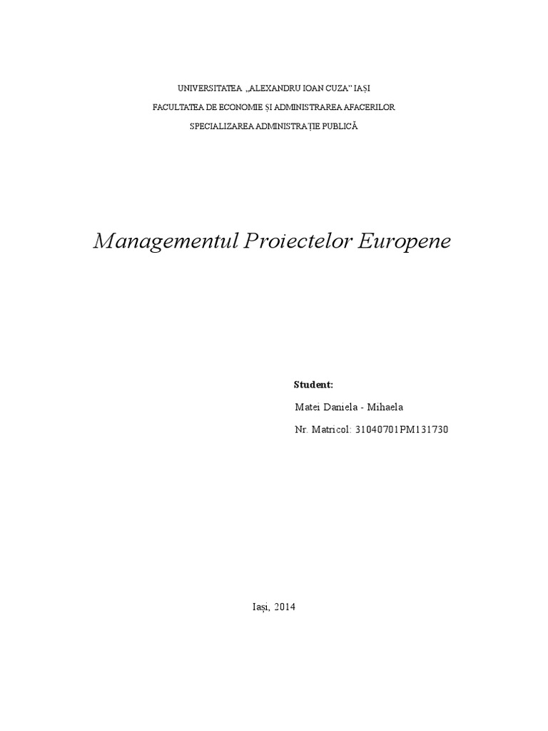 politica, contextualizarea acestor nevoi in cadrul european, precum i importana aciunii la