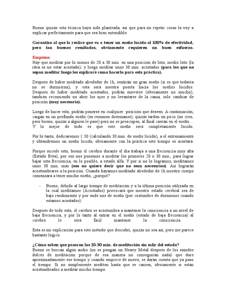 Garantizo al que la realice que va a tener un sueo lucido al 100% de efectividad,