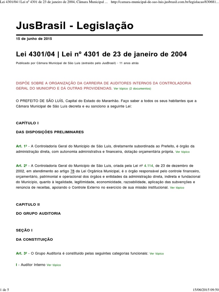 Lei 4301/04 | Lei n 4301 de 23 de janeiro de 2004, Cmara Municipal ... http://camara-municipal-de-sao-luis.jusbrasil.com.br/legislacao/830681...
