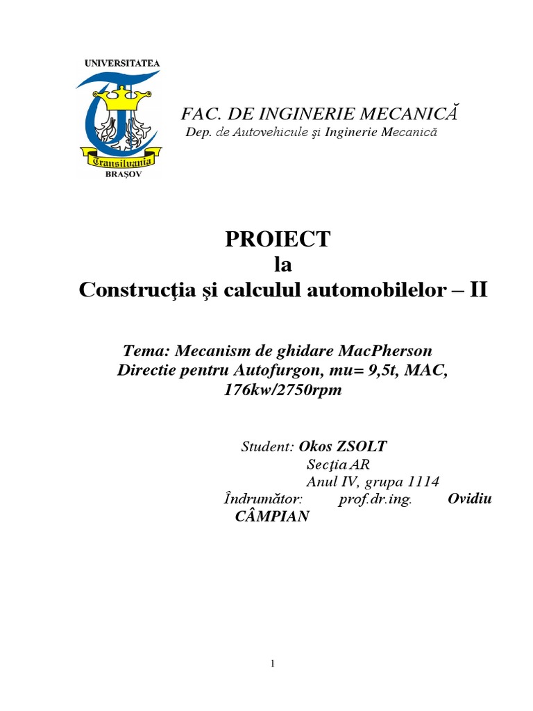 Tema: Mecanism de ghidare MacPherson