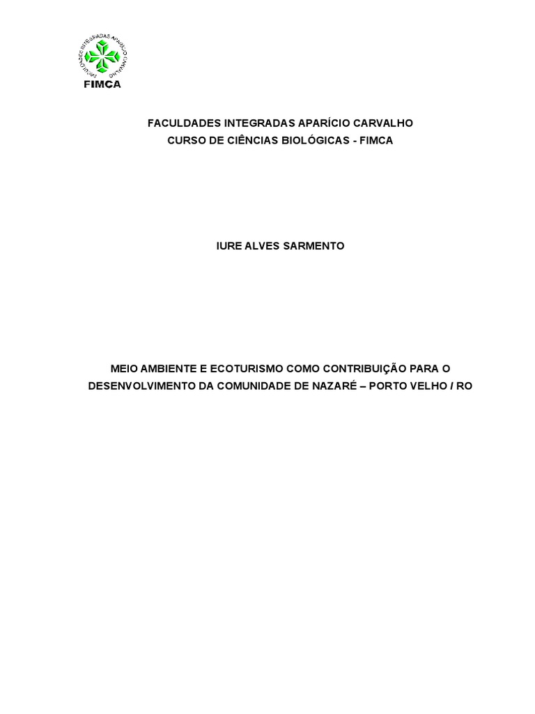 PALAVRAS-CHAVE: Ecoturismo. Envolvimento Comunitrio. Comunidade de Nazar/RO.
