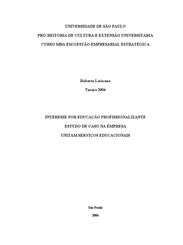 Monografia MBA Gestão Empresarial Estratégica - Universidade