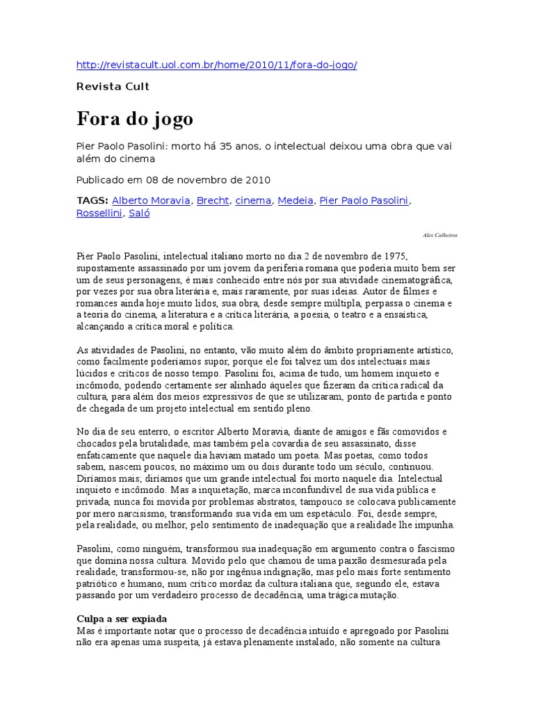 Pasolini viu em nossa cultura era to radical e violenta mais radical e violenta que
