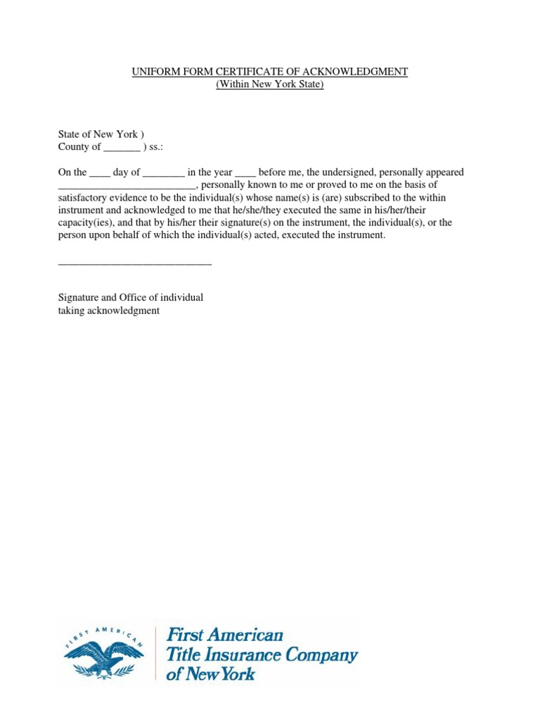 UNIFORM FORM CERTIFICATE OF ACKNOWLEDGMENT