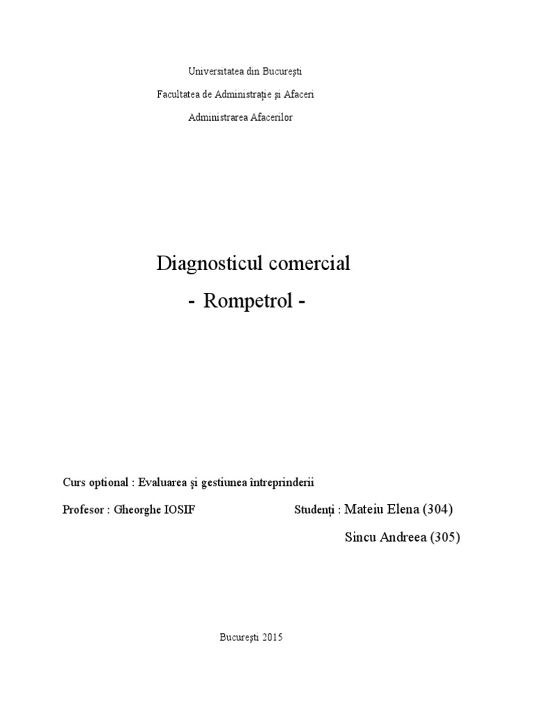 In continuare, voi prezenta principalele aspecte ale diagnosticului commercial, astfel :