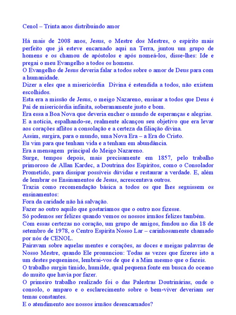 Há trinta anos, portanto, o Cenol – Centro Espírita Nosso Lar, vem