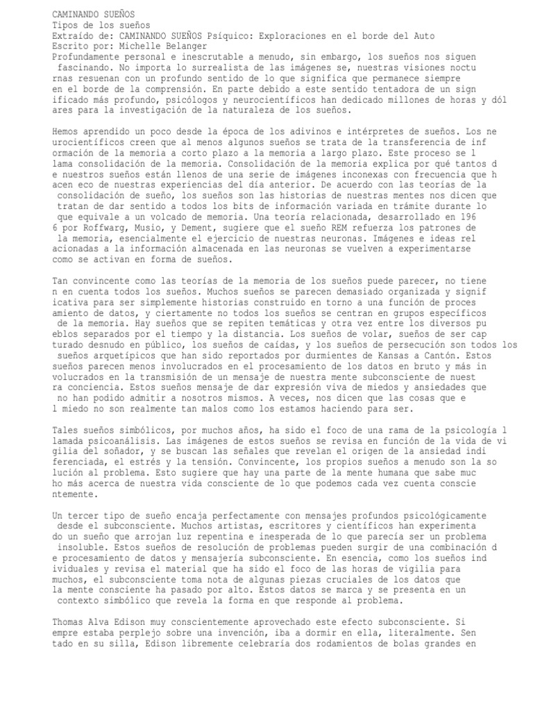 ido, los sueos de los acontecimientos futuros, y las experiencias CAMINANDO SUEOS