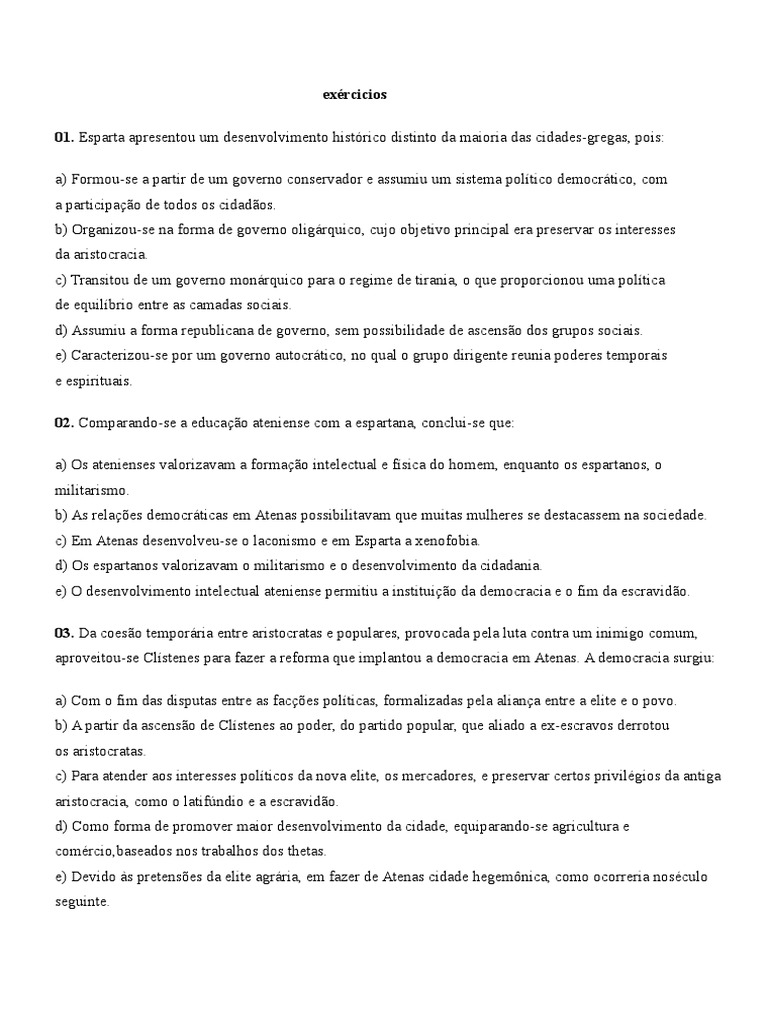 02. Comparando-se a educao ateniense com a espartana, conclui-se que: