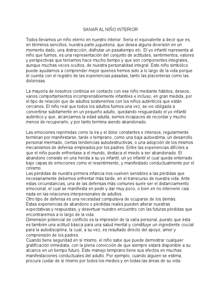 Pasos hacia una recuperacin y sanacin del nio interior