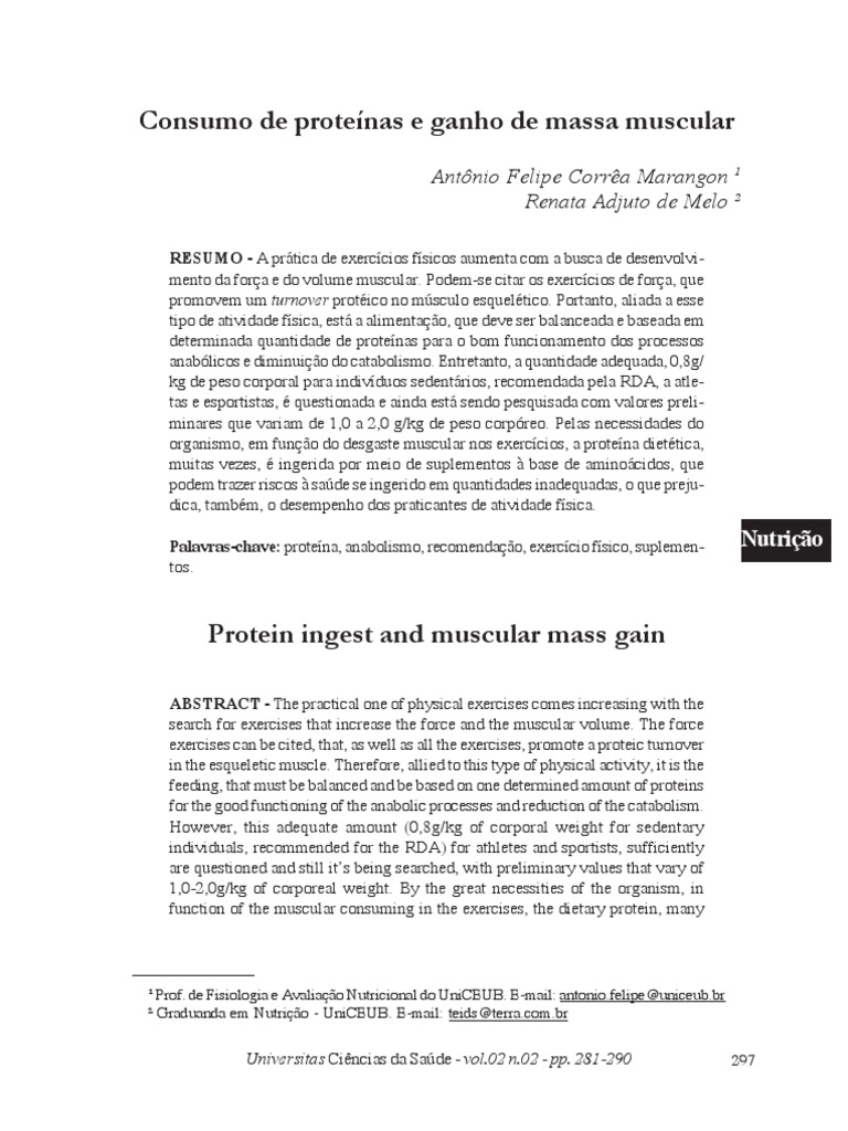 Palavras-chave: proteína, anabolismo, recomendação, exercício físico, suplemen- tos.
