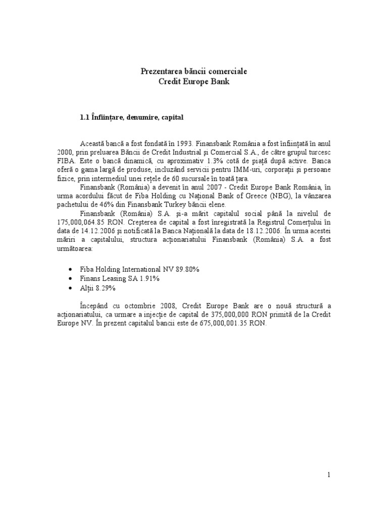 Europe NV. În prezent capitalul bancii este de 675,000,001.35 RON.