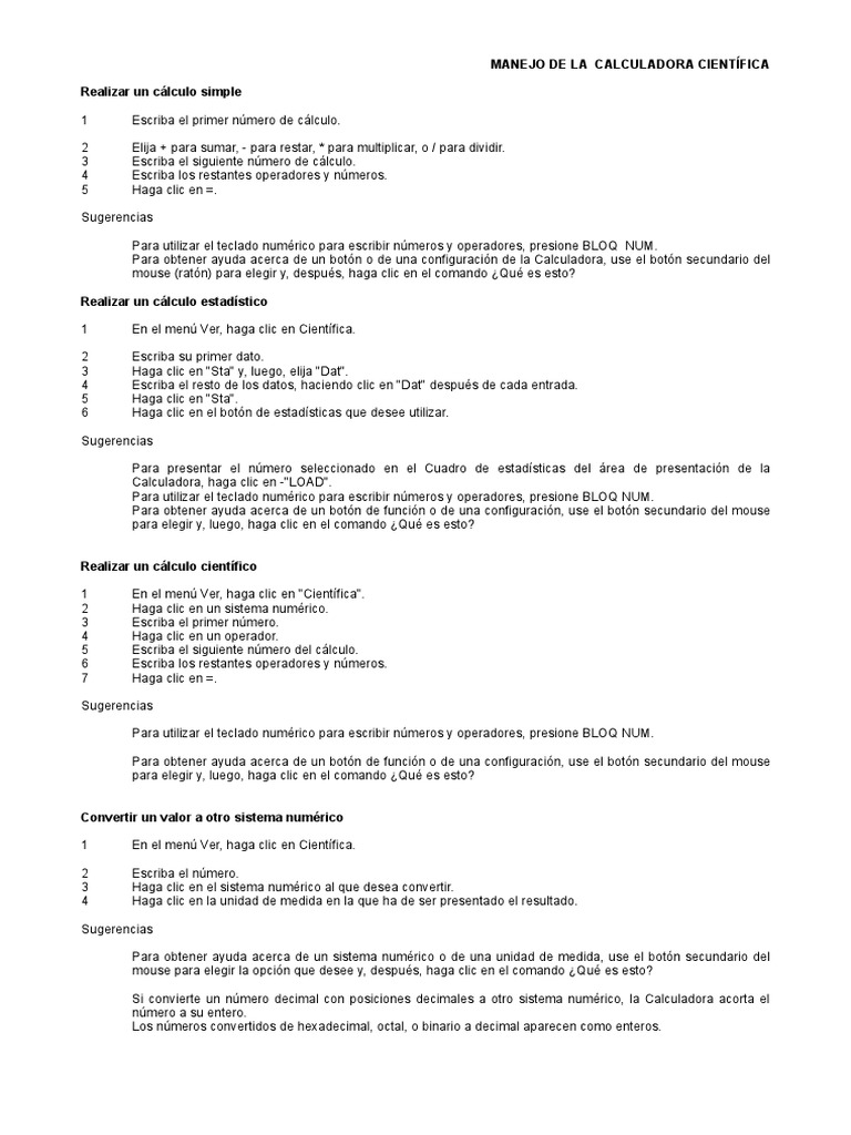 Para utilizar el teclado numrico para escribir nmeros y operadores, presione BLOQ NUM.