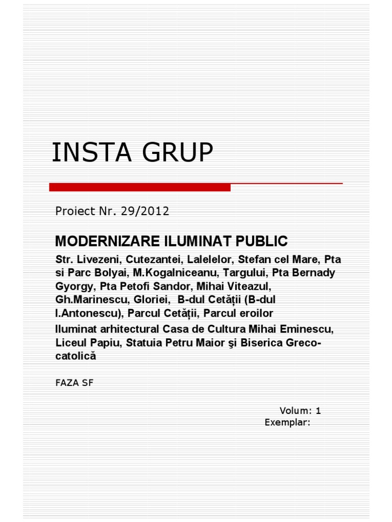 1.1 Denumirea lucrrii: MODERNIZARE ILUMINAT PUBLIC