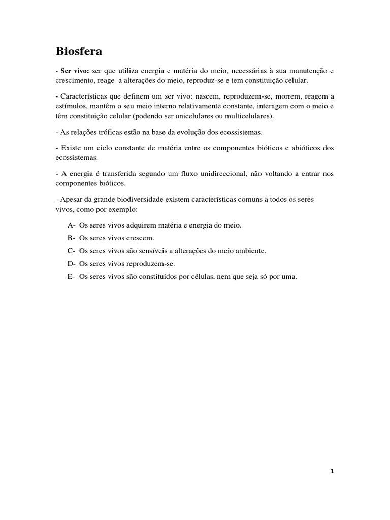 - Ser vivo: ser que utiliza energia e matria do meio, necessrias sua manuteno e
