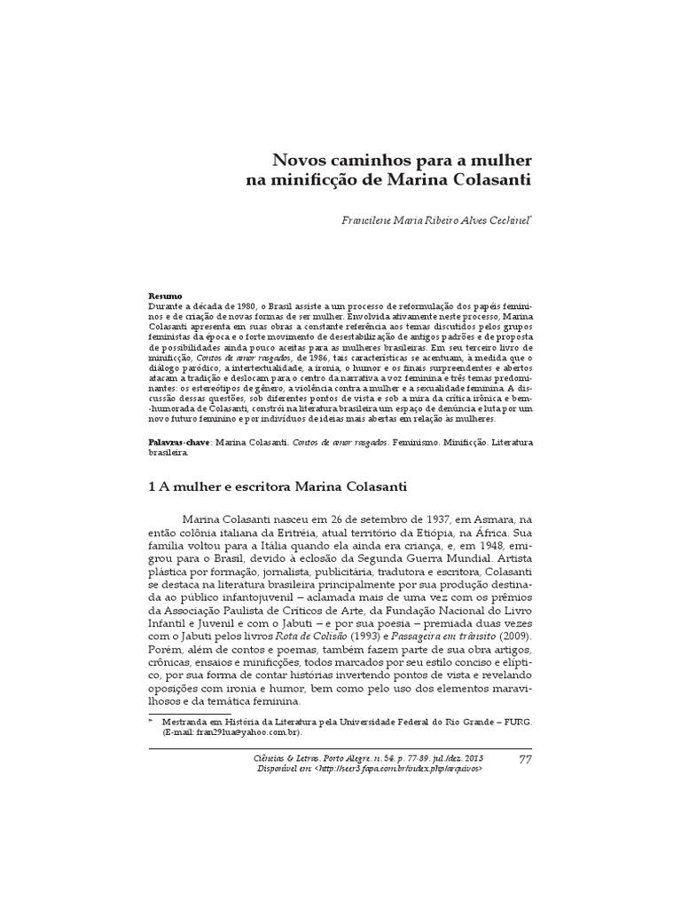 de Marina Colasanti. 2004. 143f. Dissertao (Mestrado em Literatura) Centro de Comunicao e Expresso, Universidade Federal de Santa Catarina,
