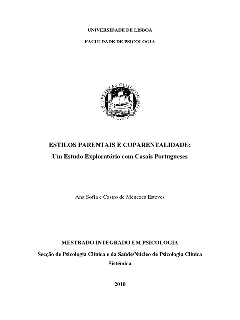 Palavras-chave: Parentalidade, Estilos Parentais, Coparentalidade, Sexo, Religiosidade.
