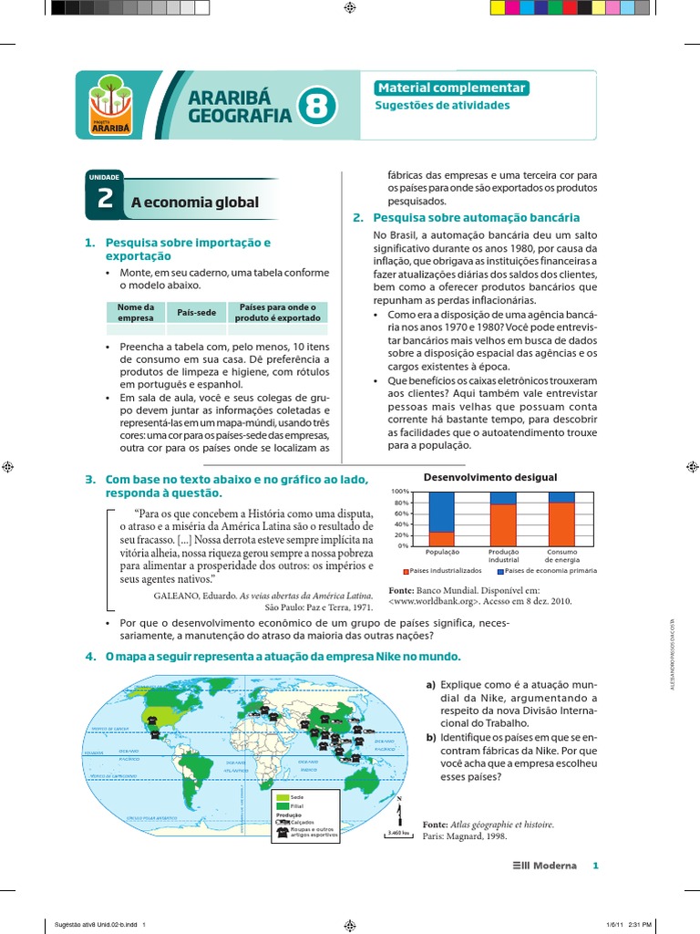 a) Explique como é a atuação mun- dial da Nike, argumentando a respeito da nova Divisão Interna- cional do Trabalho.