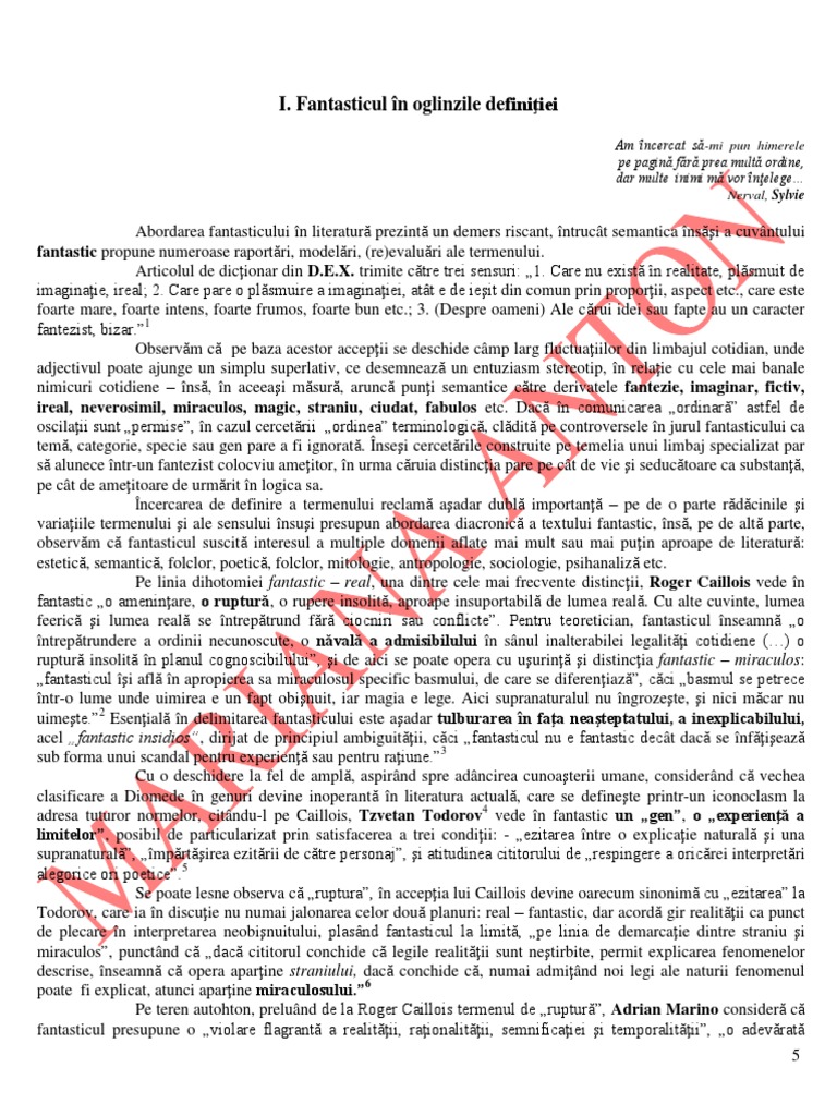 18. Cf. ibidem, p. 45-83. Reinem aici distinciile: a) fabulosul feeric - asociat supranaturalului, unde magia e lege, care nu ngrozete,