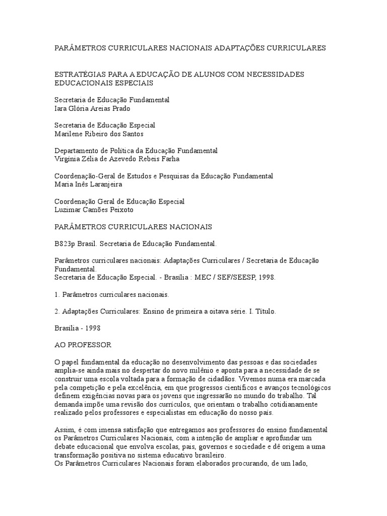 Parmetros curriculares nacionais: Adaptaes Curriculares / Secretaria de Educao