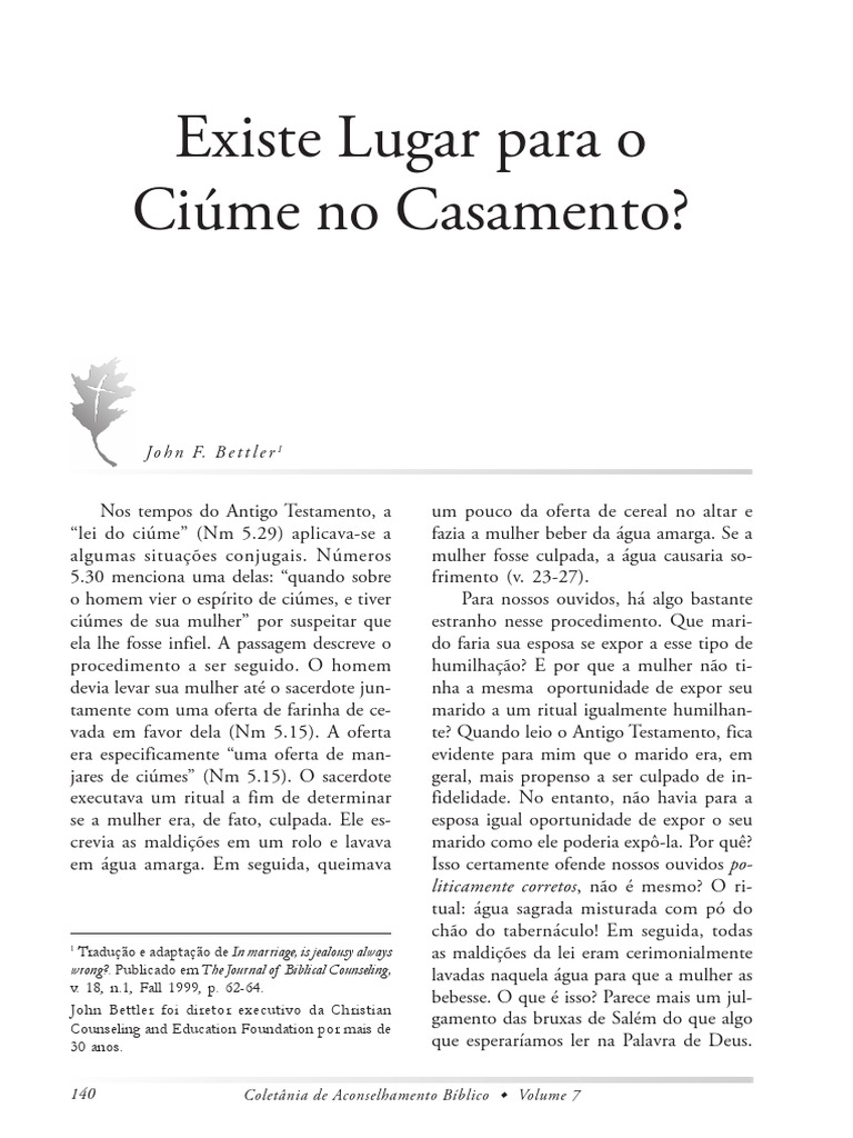 29). Deus quer que aprendamos algo sobre o cime. Sim, existe um lugar para o