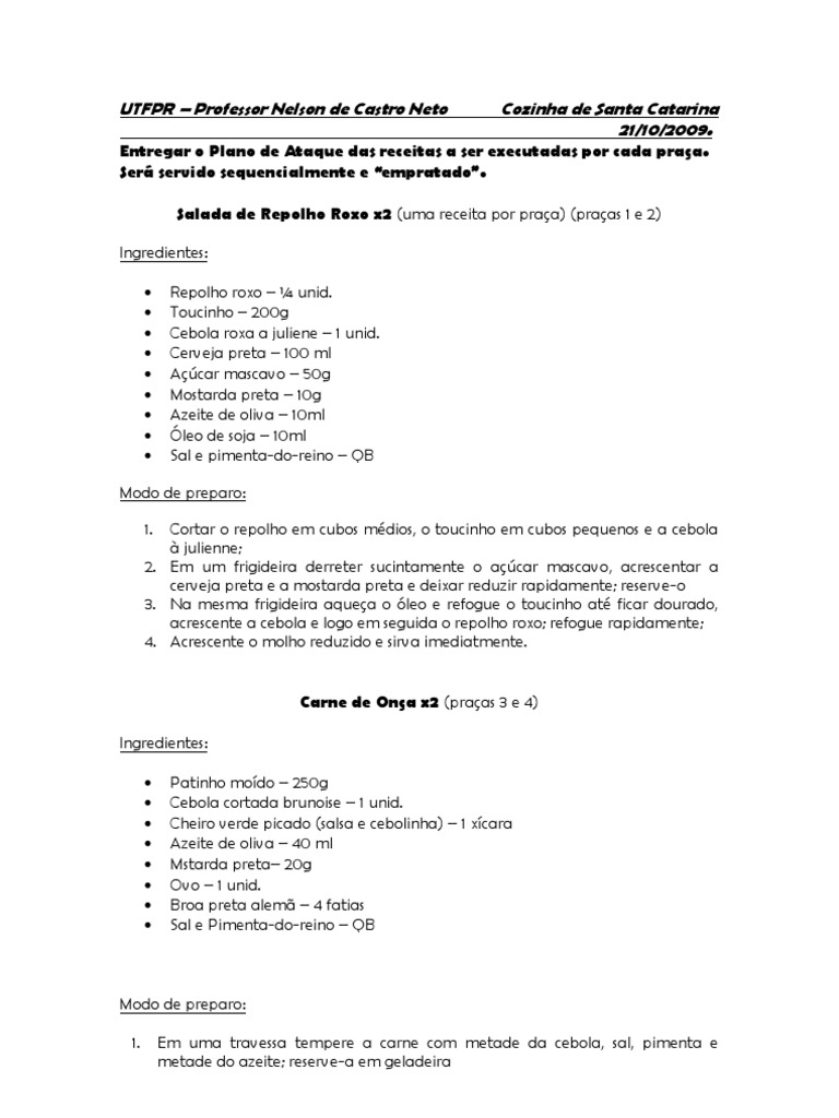 Salada de Repolho Roxo x2 (uma receita por praça) (praças 1 e 2)