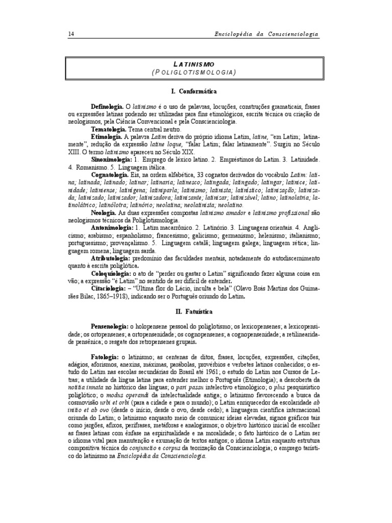 compositiva tcnica do conjunctio e corpus da teorizao da Conscienciologia; o emprego tarstico do latinismo na Enciclopdia da Conscienciologia.