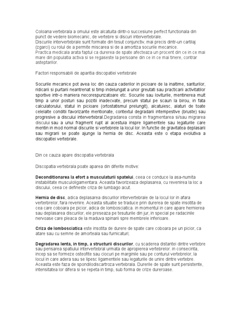 mentin in mod normal discurile si vertebrele la locul lor. In functie de gravitatea deplasarii