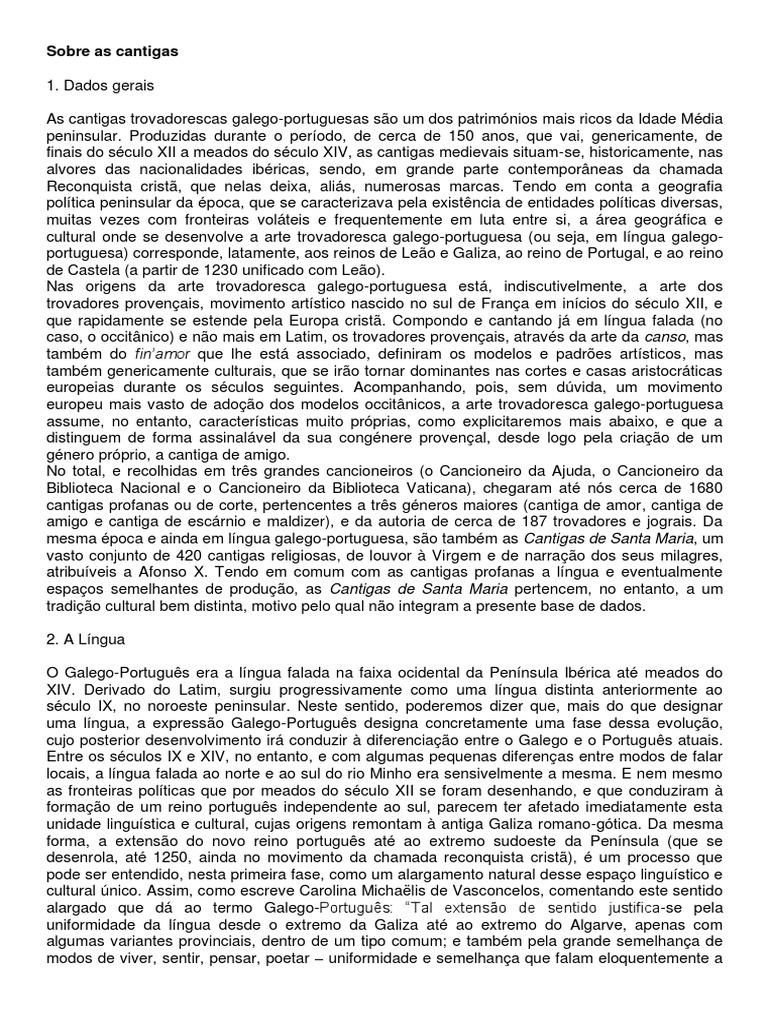 Biblioteca Nacional e o Cancioneiro da Biblioteca Vaticana), chegaram at ns cerca de 1680
