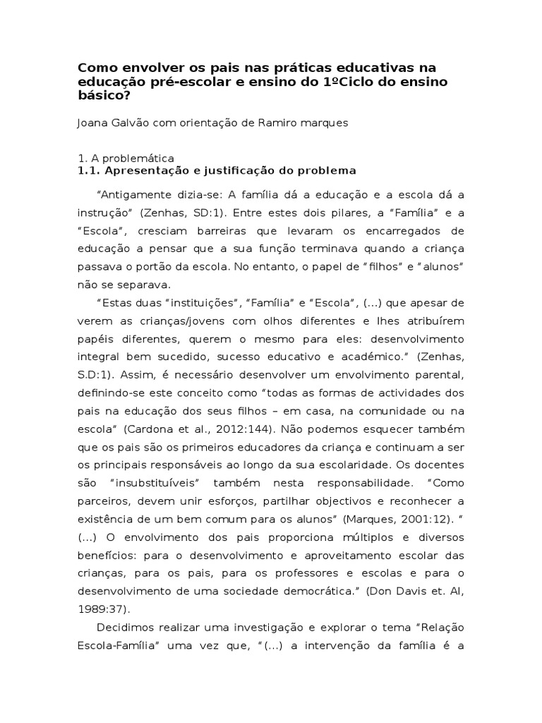 Zenhas, A. (s.d.). "Porqus" e "Comos" de uma relao famlia-escola. (e.-r. I. 16459180, Ed.) Ozarfaxinars - O Papel dos Pais na Escola, 18.