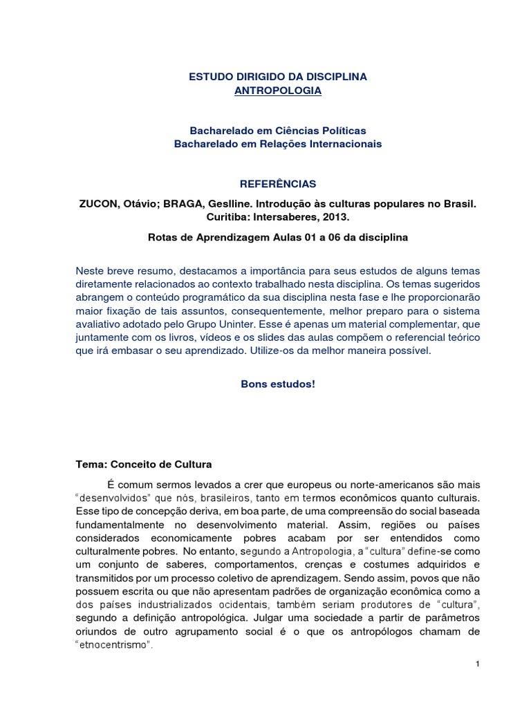 e as doutrinas oficiais. (ZUCON, Otvio; BRAGA, Geslline. Introduo s culturas
