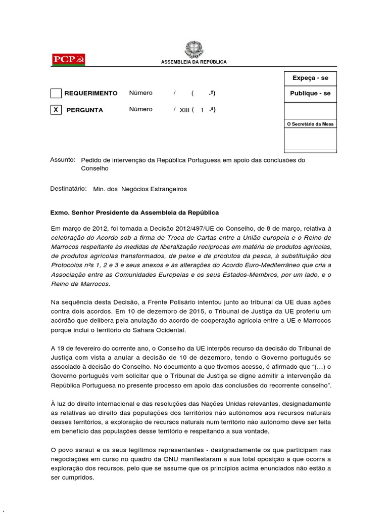 Governo portugus vem solicitar que o Tribunal de Justia se digne admitir a interveno da