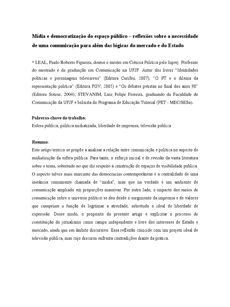 Mdia e democratizao do espao pblico reflexes sobre a necessidade