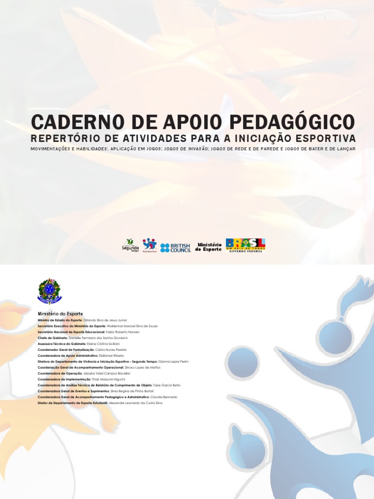 Em concordância com esse intuito de enriquecer pedagogicamente as ações relacionadas ao PST, a SNEED/ME está disponibilizando este Caderno de Apoio Pedagógico que pode subsidiar a estruturação e o desenvolvimento das aulas. Trata-se de planos elaborados em conjunto com o projeto da Instituição Britânica Youth Sport Trust, por meio da parceria com o Conselho Britânico, denominado de Projeto Tops. Este projeto está vinculado ao Programa Inspiração Internacional, programa do legado internacional dos Jogos de Londres 2012, que apoia as atividades esportivas e recreativas de formação de base. Esses planos possuem uma estrutura de fácil desenvolvimento que atende crianças e adolescentes com uma grande diversidade de atividades e jogos, possibilitando a constituição de uma base motora e técnica suficiente para o futuro enfrentamento das necessidades motoras do cotidiano e também do esporte, caso os participantes venham a se identificar com este.