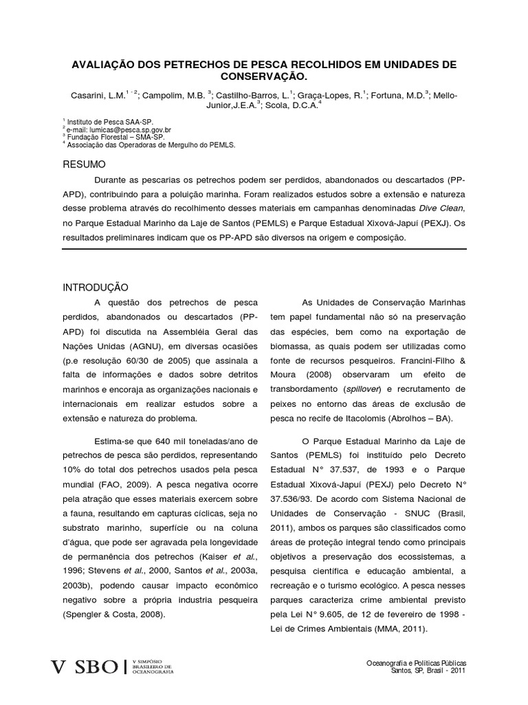 Durante as pescarias os petrechos podem ser perdidos, abandonados ou descartados (PPAPD), contribuindo para a poluio marinha. Foram realizados estudos sobre a extenso e natureza