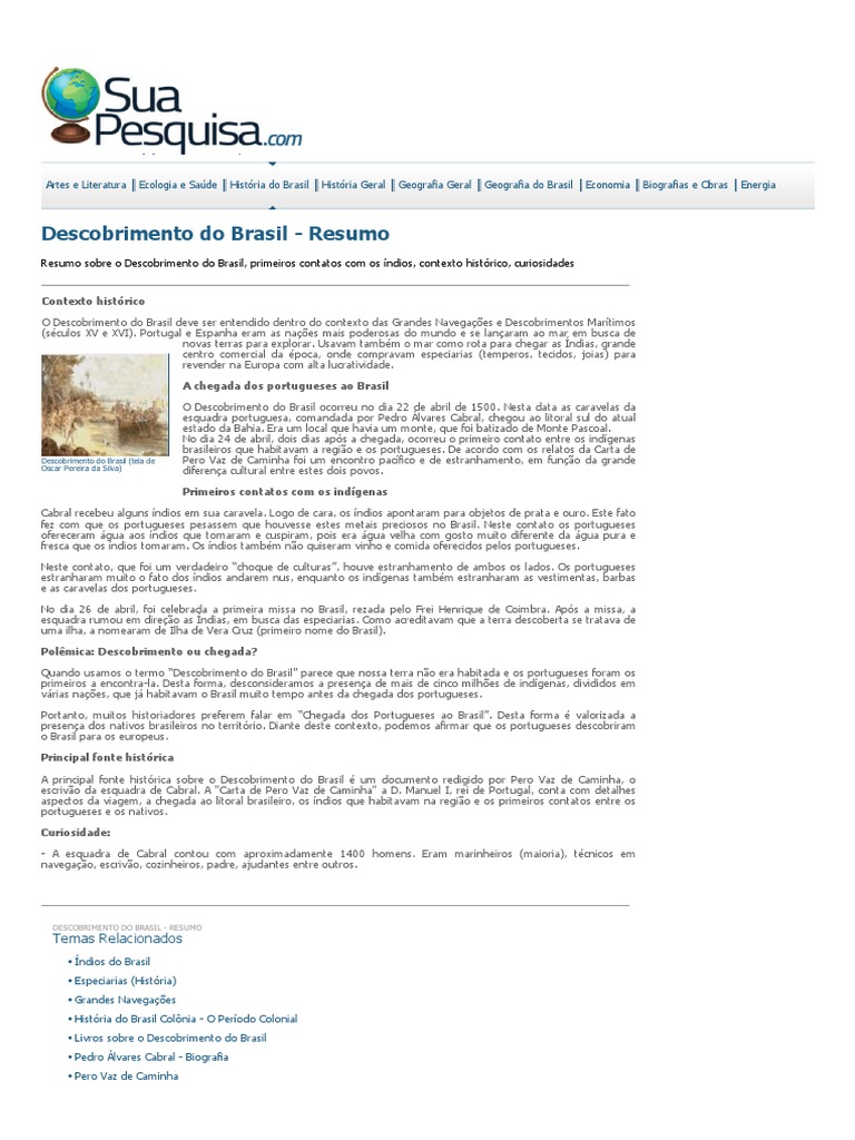 ResumosobreoDescobrimentodoBrasil,primeiroscontatoscomosndios,contextohistrico,curiosidades