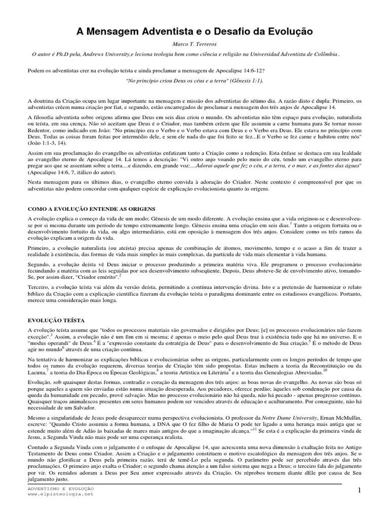 Podem os adventistas crer na evoluo testa e ainda proclamar a mensagem de Apocalipse 14:6-12?