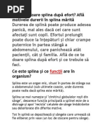 Daca observati o durere la nivelul splinei, persistenta sau intermitenta, ce se accentueaza la efort sau apare periodic,