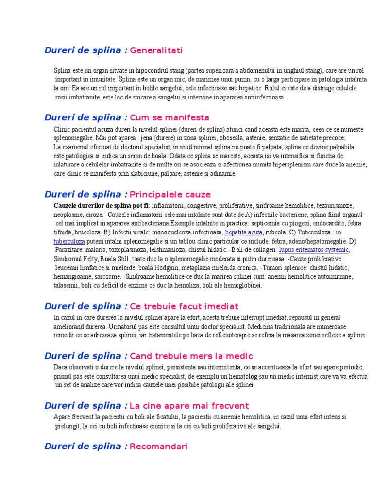 Pentru tratamentul durerilor de splina va recomandam articolul denumit "Tratamentul durerilor de splina".