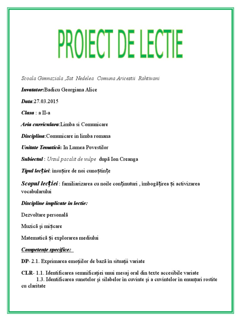 c)resurse temporale: 45 minute+ 5 minute activitate n completare