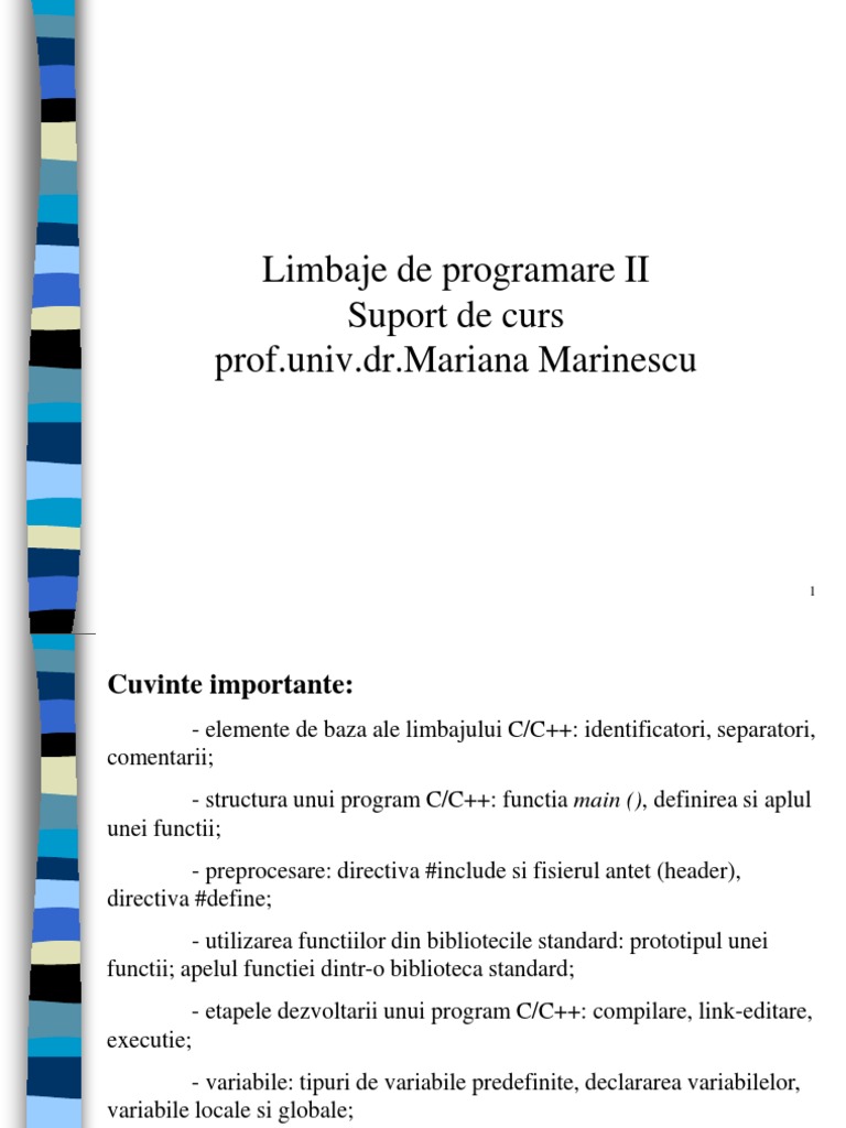 - elemente de baza ale limbajului C/C++: identificatori, separatori,