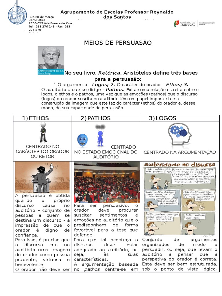 logos, o ethos e o pathos, uma vez que as emoes (pathos) que o discurso