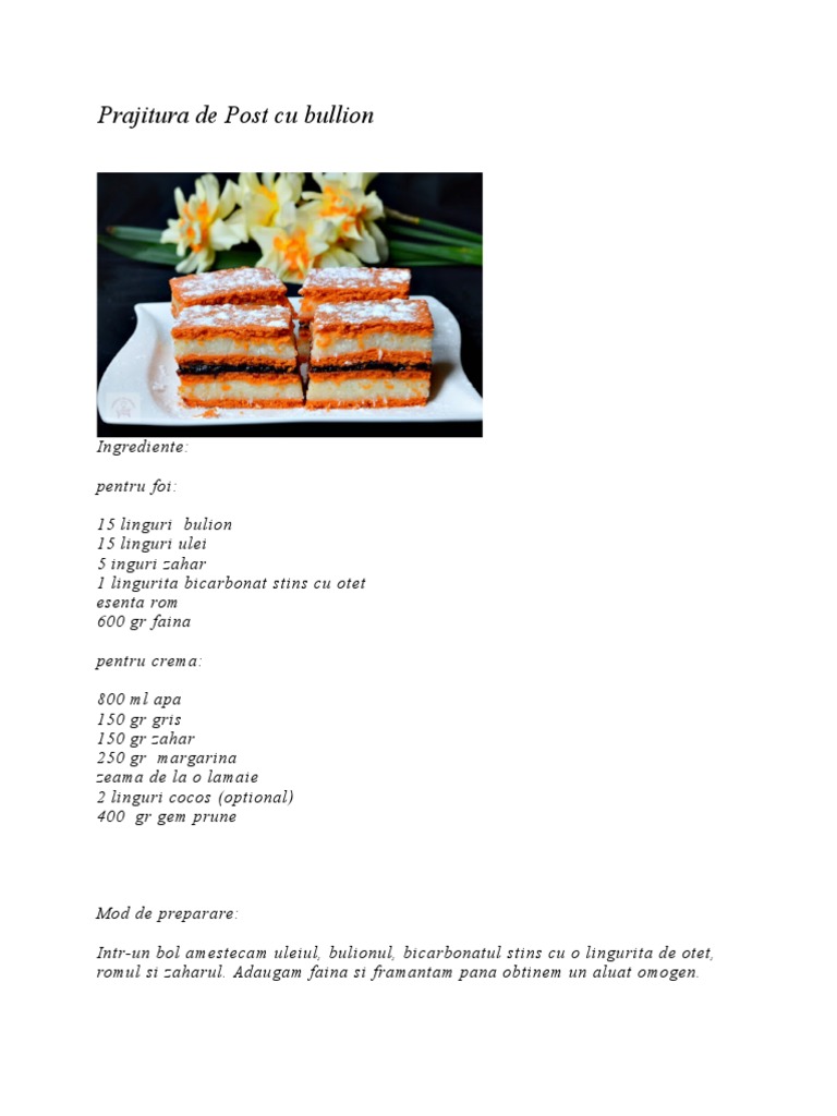 Prajitura de Post cu bullion