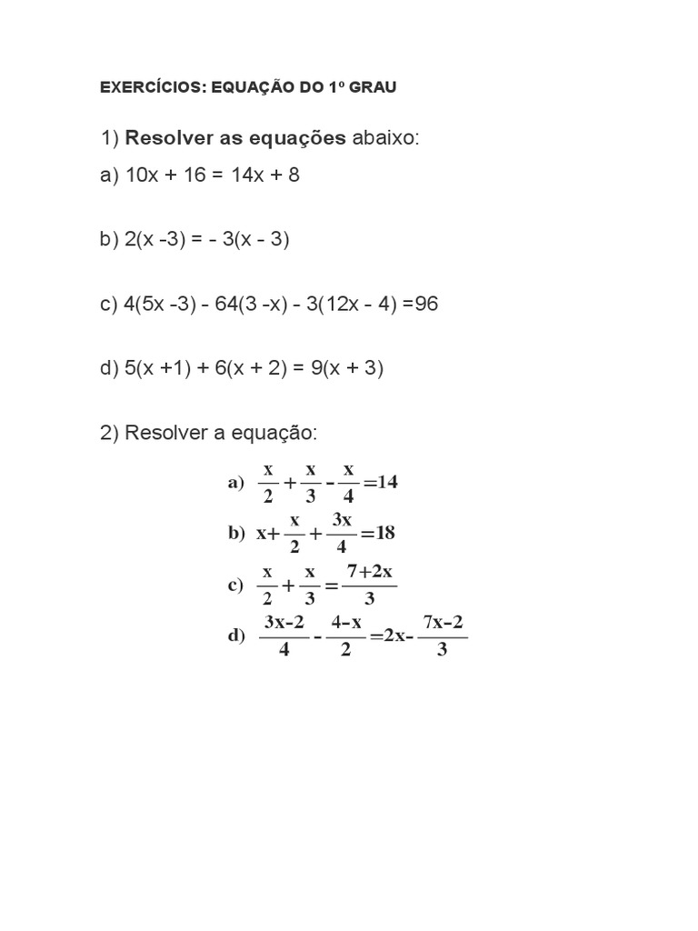 seguinte equao do primeiro grau: