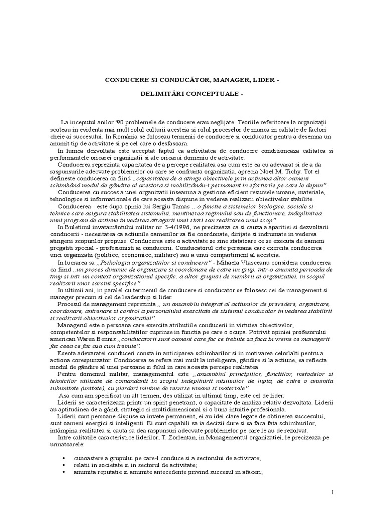 CONDUCERE SI CONDUCTOR, MANAGER, LIDER DELIMITRI CONCEPTUALE -