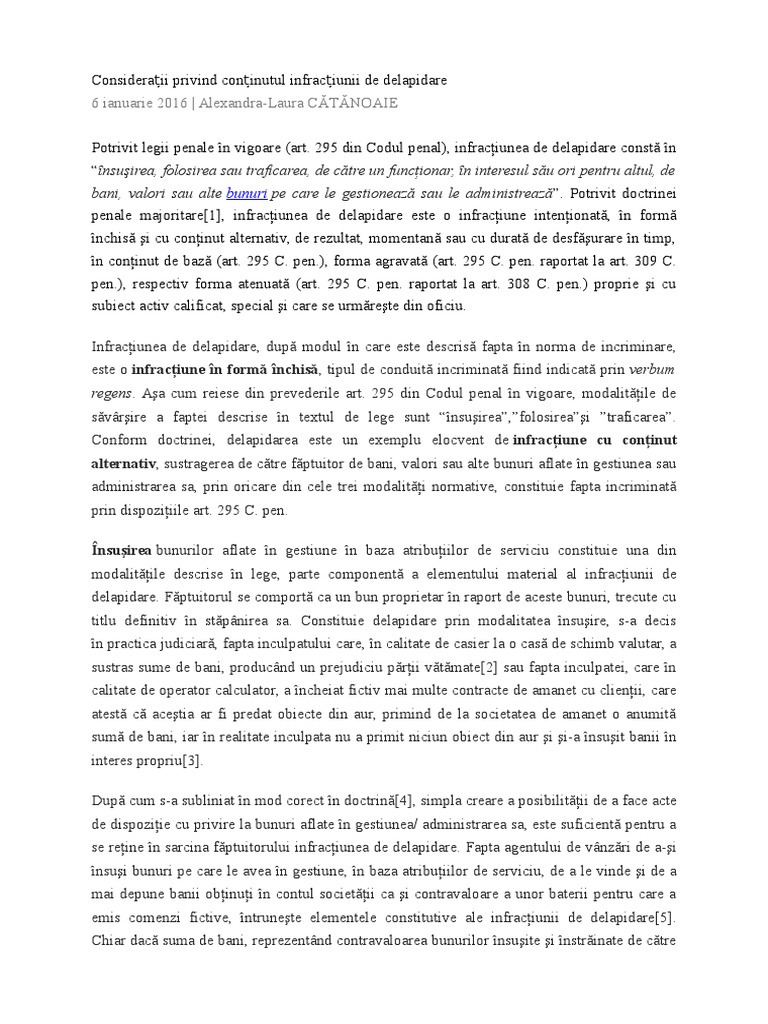 constitutiv de esena infraciunii de delapidare. Nu se poate concepe existena acesteia fr